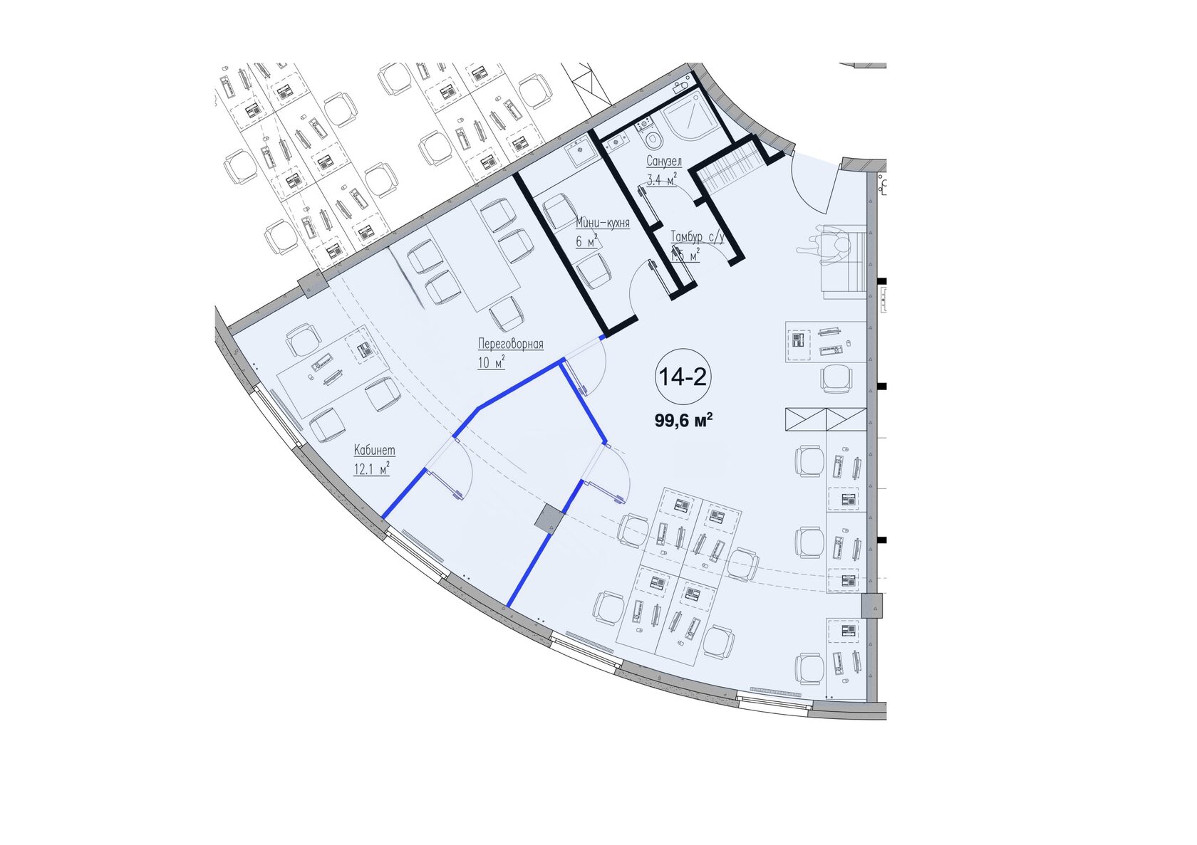 Офис - 99,6м² (14/17 этаж).